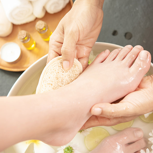 Soothing Treatment. Our packages are designed to pamper your feet to the fullest, with organic scrubs, moisturizing lotion, nourishing masks, and relaxing massages. All the products are made with high-quality, natural ingredients to help soothe and rejuvenate tired feet.